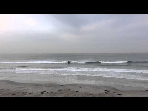 Some remaining long period south swell mixed in with some short period WNW stuff. SE breeze has put some texture on the water and isn't helping with the shape. Knee to waist high with long waits between sets. Showing on the outside but backing off quickly to push on to the inside where it flops over as shore break. But if your patient and in the right spot there is a nice looking left coming off the south side of the reef; ask Pete, he just snagged a nice one. 3 people out.