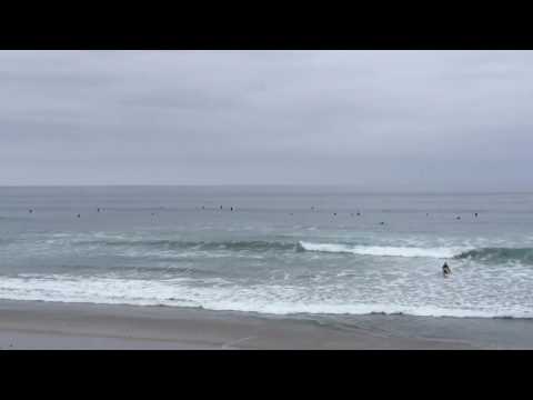 June gloom. SW wind. Summer crowds. Funky swell. Sounds like fun! Waist to chest high surf this morning. Pretty sloppy overall. Some occasional south peak pop ups; just enough to keep it interesting. Some light texture on the water. An average to slightly below average surf day. Tide is high (4.0) now. Will drain out to a 1.4 low at 12:30pm. About 40 people out; more streaming in.