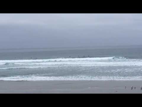 SW wind; minus tide. Conditions have seriously deteriorated since yesterday's go out. Chunky sea surface conditions with a crumble on the wave tops. But the south swell is still picking up steam; surf is waist to shoulder and larger on the sets. Inconsistent with some very long lulls. Shape is not bad for the tide; sets are a tad walled up though. Best line up is just south of the main reef. Tide has turned around and is now on the rise with max flood around 9:30am. A 4.2 high tide at 1pm then drops out to a 2.3 low for the evening session. A well spread out crowd of about 50.