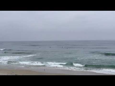 Clean conditions, light offshores and small inconsistent surf. Knee to waist high; maybe chest high in the sets. Peaking up on the outside then dropping off, rolling on through and not breaking till hitting the inside sandbar. Seductive, but not much to it. About 90" off a 3.3 high tide. Max ebb will be around 9am and then a 2.0 low around 11am. 7 people out.