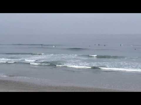 Glassy with predominantly a small south swell. Knee to waist; long long lulls. Outgoing tide. Good shape with a light crowd and partly cloudy skies. Tide bottoms out around 9am then back up to a 5.6 high at 4pm. 10 people out.