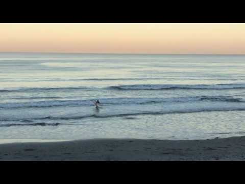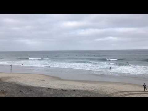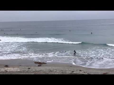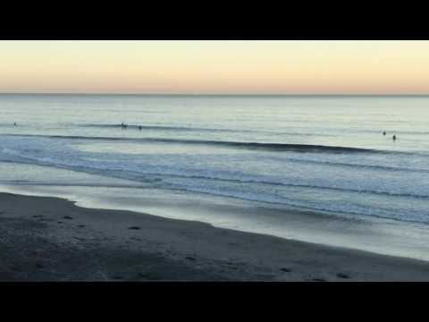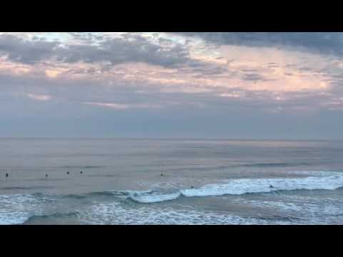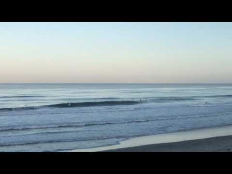High tide slugs. A super high incoming tide has slowed down the surf considerably. But it's still pretty good with waist to chest high gems popping up. Larger set waves. Sea surface is glassy smooth and the dawn has cast a golden glimmer to it. Water temp has dropped to 60-61 degree range. Might be a good day to call in sick. About 25 people out. 6.1 high tide at 8:30am. 0.3 low at 3pm.